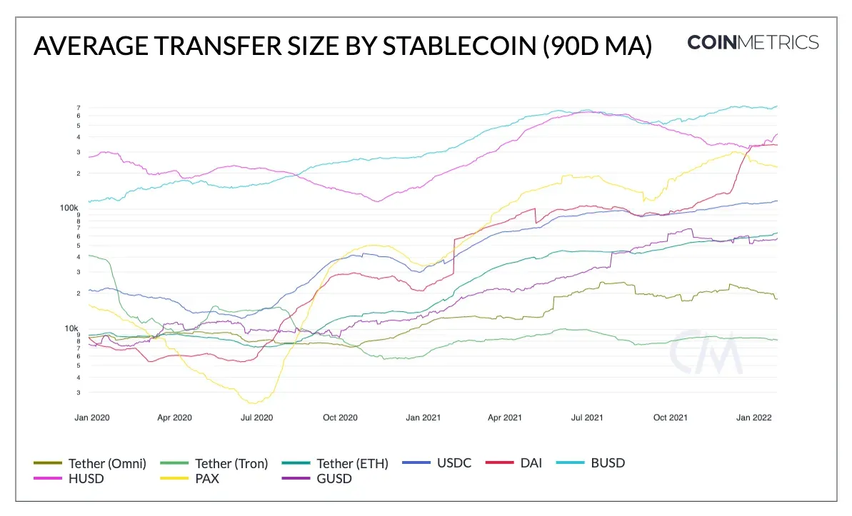 As I pointed out in November, USDC recently passed PayPal in two significant, and roughly comparable, usage metrics. In Q3 2021, PayPal’s Total Payment Volume was $310b while USDC users settled $348b of transactions in the same period. Additionally, at the end of Q3 2021, PayPal reported $37.8b in outstanding consumer balances, and USDC had approximately $38b in total supply at the same time. 2